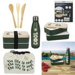 Nejlepší cenaDvoupodlažní zelený lunchbox Intesi s dřevěným víkem a lahví do práce nebo školy