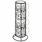 Sada 4 keramických hrnků Floral 240 ml na kávu a čaj bílá 5five simply smart