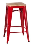 Nejlepší cenaBarová židle Paris Wood 75 cm červená industriální kovová s dřevěným sedákem k kuchyňskému ostrůvku
