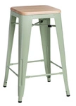 Barová židle Paris Wood 75 cm zelená industriální stolička s dřevěným sedákem k kuchyňskému ostrůvku