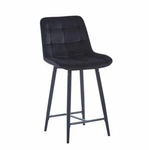 Barová židle Poly Low černý samet s opěrkou do kuchyně a k ostrůvku moderní prošívaná
