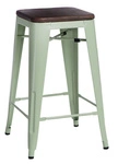 Nejlepší cenaBarová židle Paris Wood 65 cm industriální zelená kovová s dřevěným sedákem k kuchyňskému ostrůvku