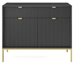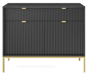 Nejlepší cenaČerná rýhovaná komoda se zlatými nohami a zásuvkami 104 cm do obýváku Intesi