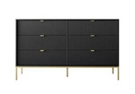 Nejlepší cenaČerná rýhovaná komoda Delicious se 6 zásuvkami na zlatých nožkách glamour do obýváku 154 cm