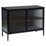 Nejlepší cenaPoslední kusyČerná moderní kovová komoda Aldir se skleněnými dvířky na nožkách 100 cm do obýváku