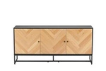 Speciální nabídkaKomoda Clar 160 cm moderní dub a černá s čely v rybí kosti na kovových nohách do obýváku