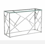 Skleněná konzole Zyra moderní stříbrná do předsíně a obýváku 120 cm odkládací stolek