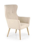 Křeslo ušák Damar béžové do obýváku skandinávské relaxační s dřevem Intesi