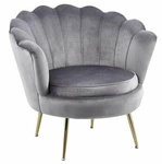 Křeslo Korab VIC šedý samet glamour s mušlovým opěradlem a zlatými nohami do obýváku