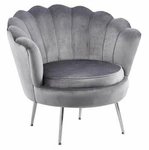 Křeslo Korab VIC šedý samet glamour do obýváku mušle na stříbrných nohách