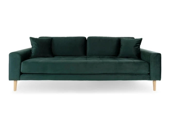 Třímístná sametová pohovka Lido Intesi lahvově zelená skandinávský styl do obýváku s područkami