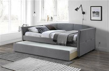 Nejlepší cenaČalouněná postel Sussan šedá dvoulůžková s výsuvnou matrací do ložnice