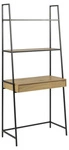 Pracovní stůl loftový Aliaj s policemi přírodní dub a černý kov do pracovny nebo studentského pokoje