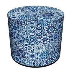 Nejlepší cenaModerní kulatý taburet Calc Intesi čalouněný modro-bílý do obýváku nebo ložnice