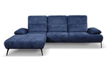 Moderní modrá rohová sedačka Rasmus levá s nastavitelnou opěrkou do obýváku Intesi