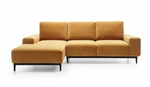 Rohová rozkládací pohovka Revon žlutá moderní sametová levá do obýváku 266 cm