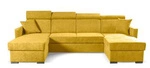 Rohová rozkládací sedačka Mils U hořčicová moderní do obýváku s úložným prostorem