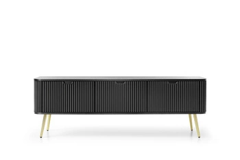 TV stolek Seda černý s frézovanými dvířky a zlatými nohami 188 cm moderní do obýváku