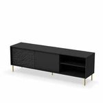 Nejlepší cenaModerní černá TV komoda Afir 180 cm na zlatých nohách do obýváku s policemi a skříňkami