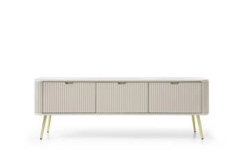 Nejlepší cenaTV stolek Seda béžový s drážkovaným povrchem a policemi na vysokých zlatých nohách do moderního obýváku