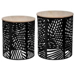 Nejlepší cenaSada 2 kulatých konferenčních stolků Akira do obýváku boho moderní dřevo a černý kov