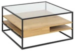 VýprodejKonferenční stolek Randolf čtvercový skleněný s policemi dub moderní loftový do obýváku 80x80 cm