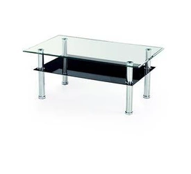 Obdélníkový konferenční stolek Laland skleněný glamour s chromovanou policí do obývacího pokoje