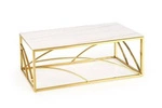 Konferenční stolek Taman obdélníkový skleněný bílý mramor zlatý glamour do obýváku Intesi 120x60