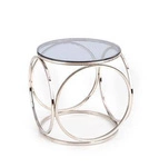 Moderní kulatý konferenční stolek skleněný Deyn S Intesi stříbrný 50 cm do obýváku