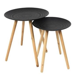 Nejlepší cenaSada 2 kulatých konferenčních stolků Akira do obýváku boho moderní dřevo a černý kov