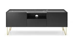 TV stolek Seda černý s frézovanými dvířky a zlatými nohami 188 cm moderní do obýváku