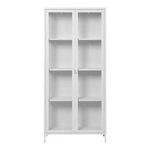 Bílá skleněná vitrína do obýváku Brisbane Intesi moderní kovová na knihy a dekorace 175 cm