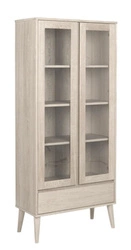 VýprodejSkleněná vitrína na knihy do obýváku Nagano bělený dub skandinávský se zásuvkou Actona 80 cm