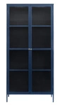 NovinkaVitrína BRONCO tmavě modrá 190 cm loftová skleněná do obýváku na alkohol
