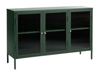 NovinkaKomoda Bronco zelená moderní na nožkách s rýhovaným sklem 132 cm