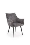 Čalouněná jídelní židle Arhiza šedá s područkami, moderní na černých nohách