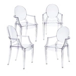 Sada 4 průhledných jídelních a obývacích židlí s područkami Royal