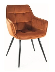 Čalouněná sametová jídelní židle Loly Intesi s područkami v skořicové barvě