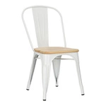 Jídelní židle Paris Wood bílá kovová s dřevěným sedákem industriální D2.DESIGN