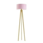 Nejlepší cenaStojací lampa trojnožka glamour MIAMI Lysne růžová s látkovým stínidlem dubový podstavec do obýváku