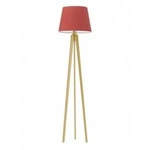 Stojací lampa Curacao moderní s červeným stínidlem a dřevěnou konstrukcí do obýváku Lysne