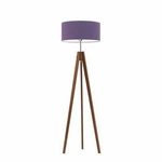 Stojací lampa do obýváku HAITI Lysne fialová s textilním stínidlem dubová konstrukce 138 cm