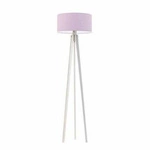 Stojací lampa do obýváku Miami trojnožka dřevěná fialové stínidlo bílý podstavec glamour