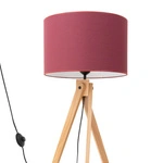 NovinkaStojací lampa do obýváku NATT burgund moderní dřevěný trojnožka s textilním stínidlem 140 cm