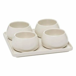 Servírovací sada na předkrmy Nora bílá z glazované keramiky na kulatém tácu 5five