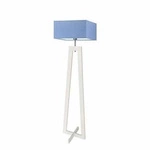 Stojací lampa do obýváku Jawa modrá bílý textilní stínidlo dřevěná moderní Lysne