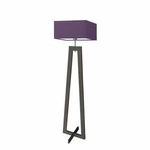 Moderní fialová stojací lampa do obýváku s dřevěnou konstrukcí a stínidlem Jawa 138 cm