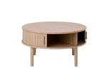 Nejlepší cenaNovinkaKonferenční stolek Meta kulatý 85 cm dubový skandinávský s úložným prostorem