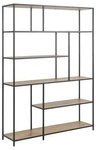 VýprodejIndustriální kovová knihovna Seaford XIV s dubovými policemi a černým rámem do obýváku 135 cm
