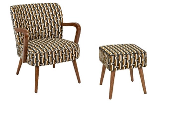 Odpočinkové křeslo Chiara s podnožkou, hnědé čalouněné, do retro obývacího pokoje, s područkami Atmosphera